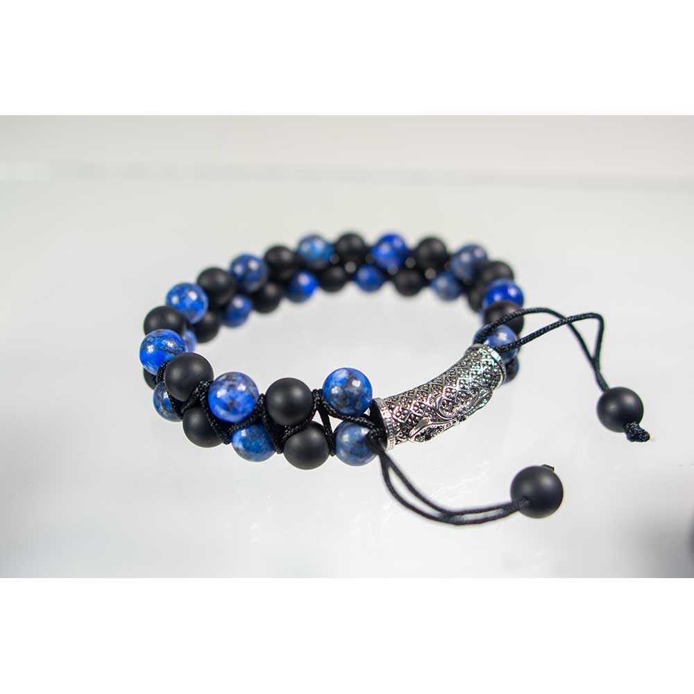 Adj Bracelet 8mm Bead Double Row Lapis, Matte Black Agate